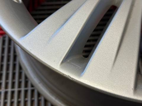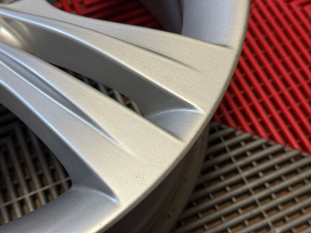 All 4 wheels are verified to be straight and true, and free of cracks, bends or prior repairs. Cosmetically wheels are a 9/10 overall. Original factory finish - wheels have not been refinished. No curb rash. Wheel faces show some small nicks, light scratches and minor marks from normal use.