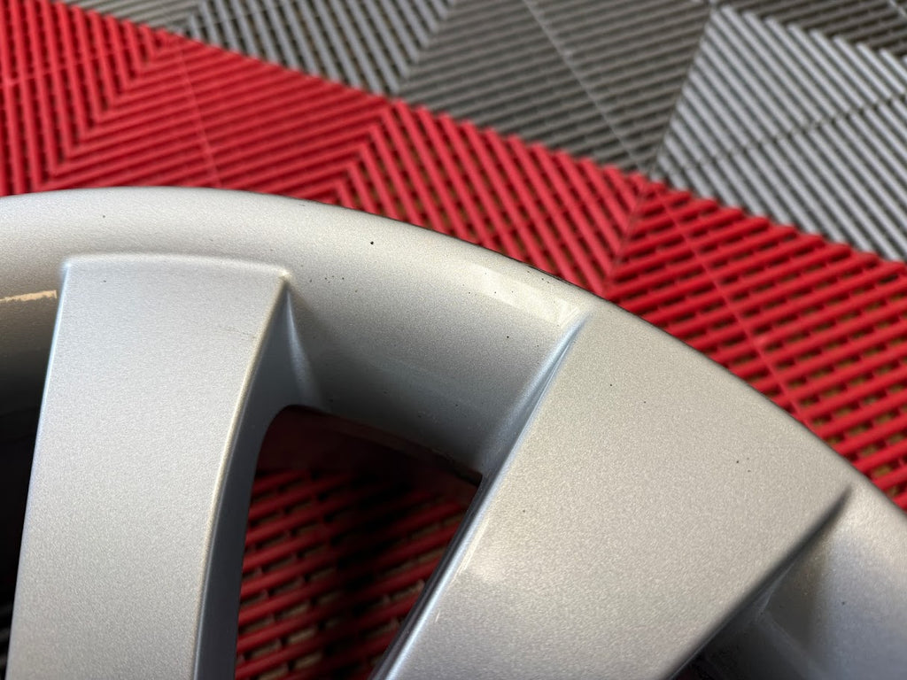 Cosmetically wheels are a 9/10 overall. Original factory finish - wheels have not been refinished or touched up. A few tiny nicks and small scuffs from normal use. Some light brake dust residue inside the wheel pockets.