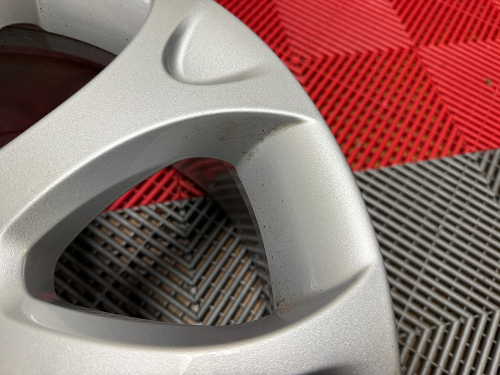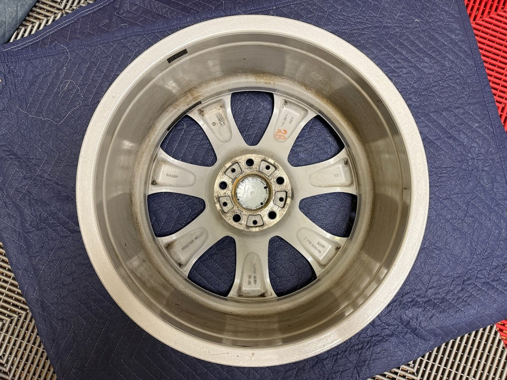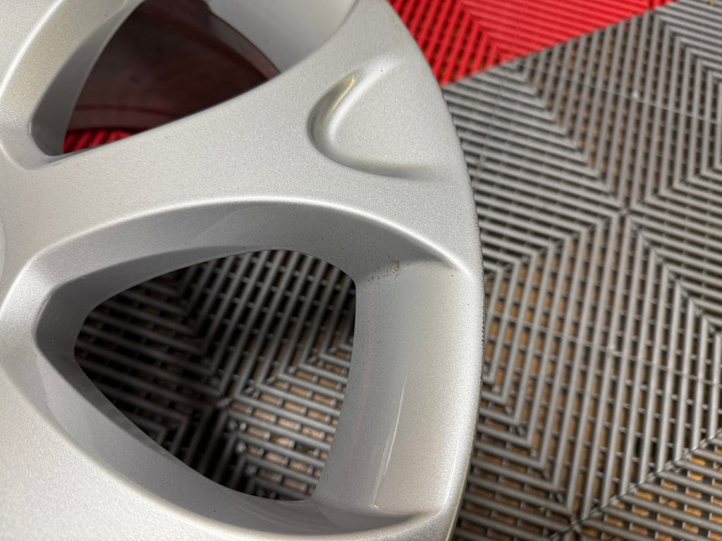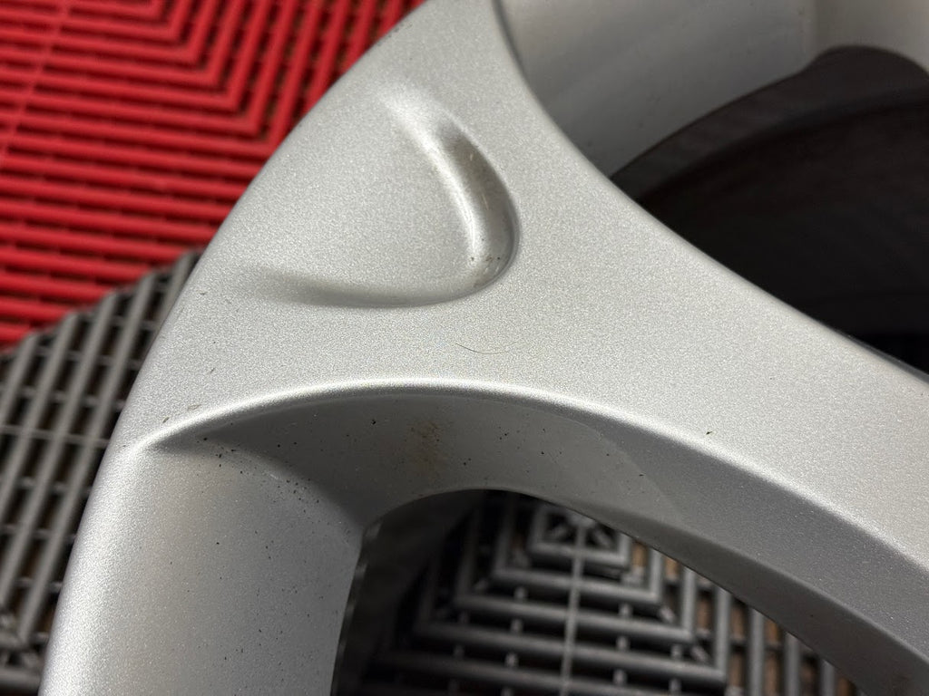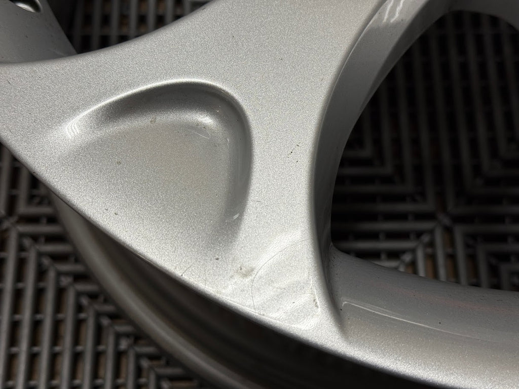 Cosmetically wheels are a 9/10 overall. No curb rash. Wheel faces show some small nicks, light scratches and minor marks from normal use. Some light brake dust residue inside the wheel pockets, and in the inner wheel barrel.