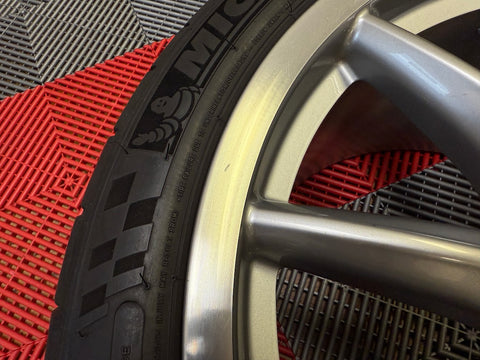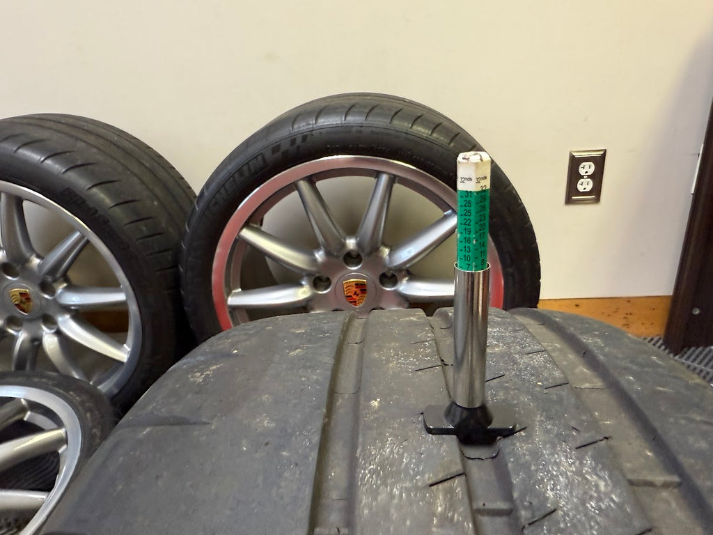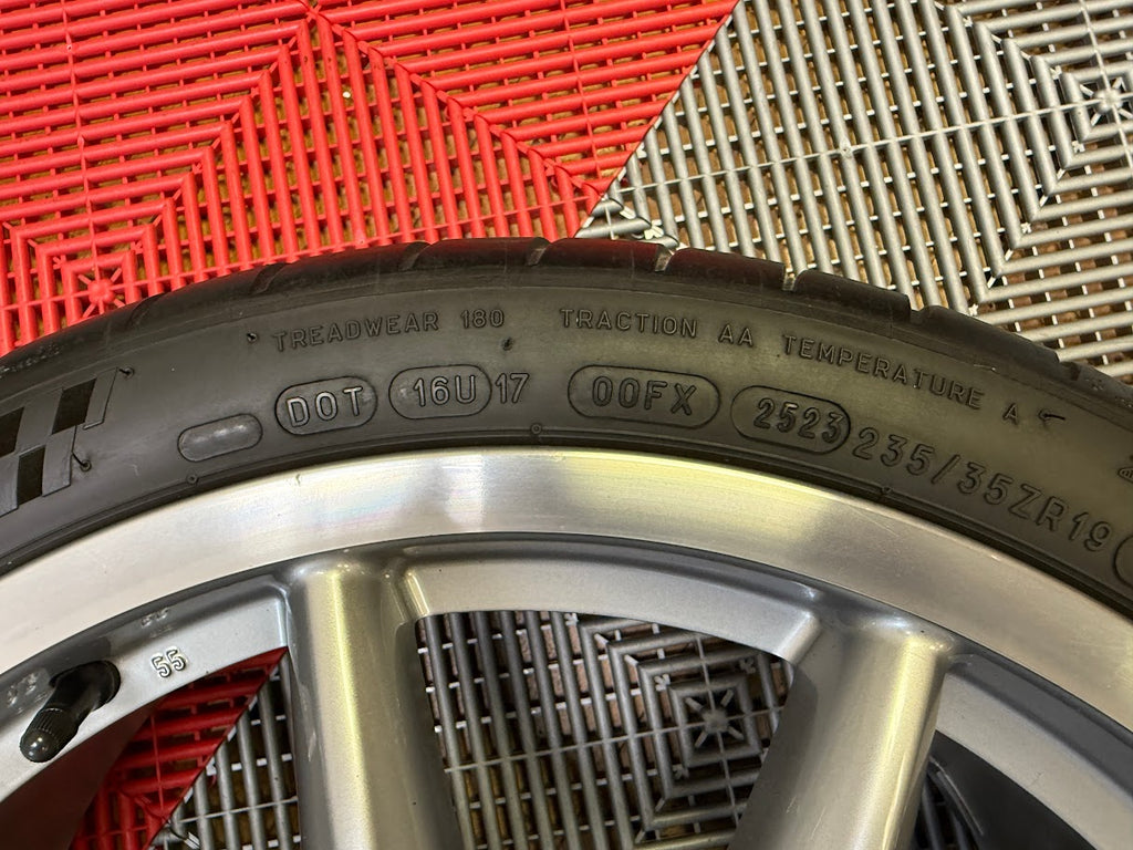 Tires are Michelin Sport Cup 2 streetable track & competition tires. Front tires have 2023 date codes and show between 6-7/32" of remaining tread. Rear tires have 2022 date codes and show approximately 5/32". These are aggressive tires for street use - buyer to drive on them at their own risk and discretion.