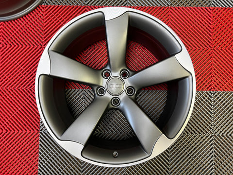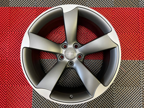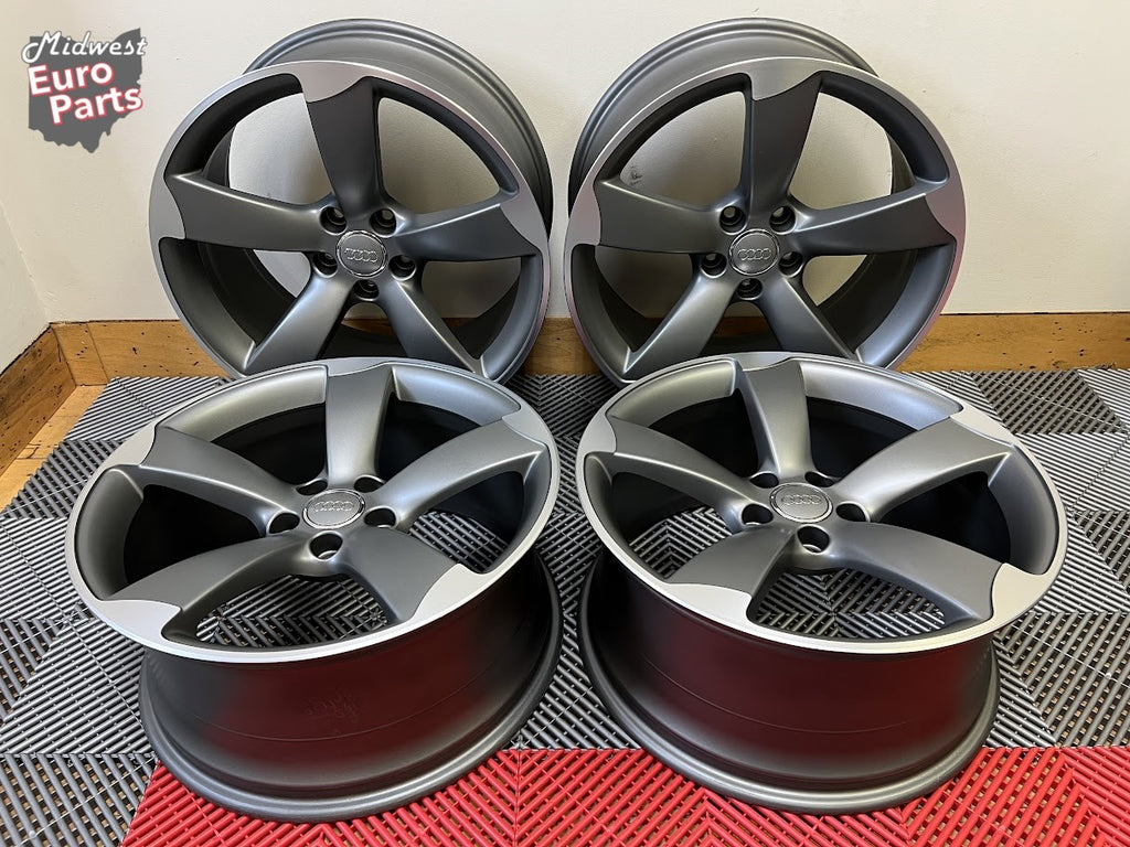 Up for sale is a set of OEM 20" Audi RS5 "Rotor" style wheels. Originally equipped on 2013-15 RS5 models, but will fit all B8 A5, S5 and RS5.
