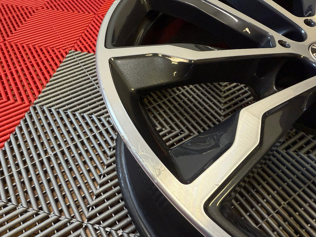 Cosmetically the wheels are a 7.5/10 overall. 3 of the wheels show curb rash - some worse than others. The one remaining wheel has no rash, but does show some oxidation underneath the clear coat. Some small scuffs, scratches and nicks from normal use. Refinishing available at additional cost (single color finish starts at $750.00).