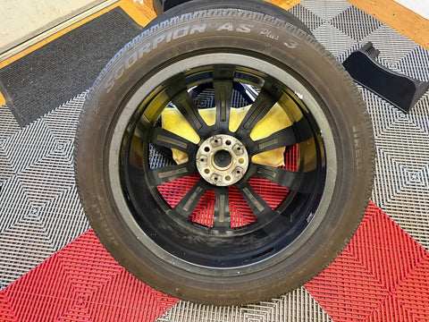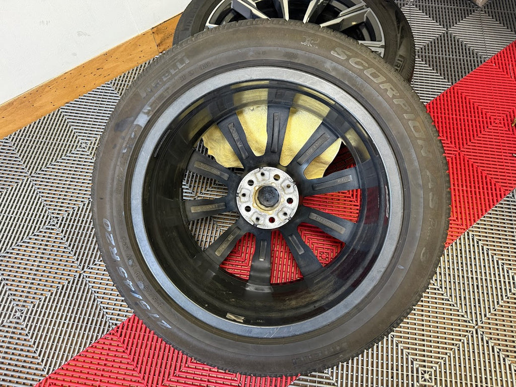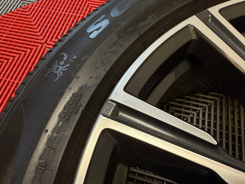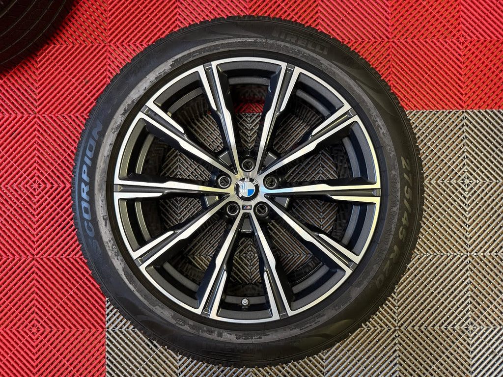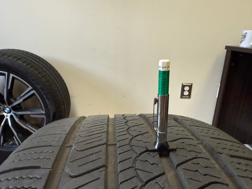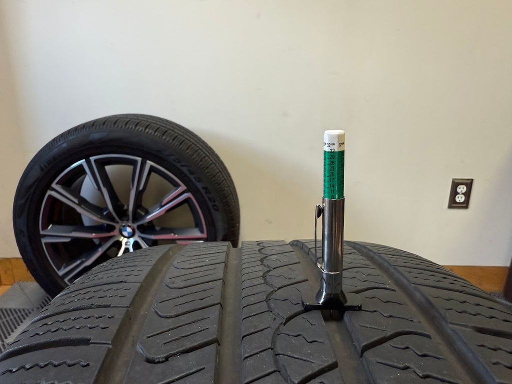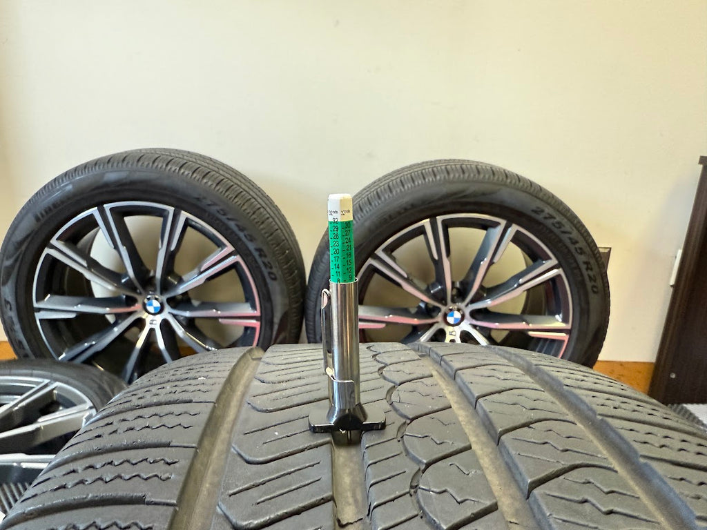 Tires are Faces may have a few superficial marks from handling. Backside and inner barrels of the wheels show some small chips and marks. Tires are Pirelli Scorpion AS Plus 3 All-Season tires. These are not run flat tires like the original OEM BMW tires. It is recommended to carry a spare tire if your vehicle does not already have one. Tires show between 8-9/32" of tread remaining and 2023 date codes all around.