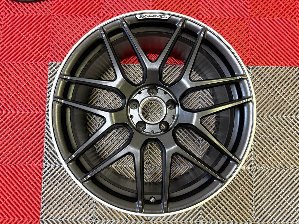 Cosmetically the wheels have been professionally refinished and not mounted since. Work was done very well, but some superficial imperfections remain. Outer lips have been machine cut along with the AMG logo. Outer lips are a little lower than the rest of the wheel face due to the machining work.