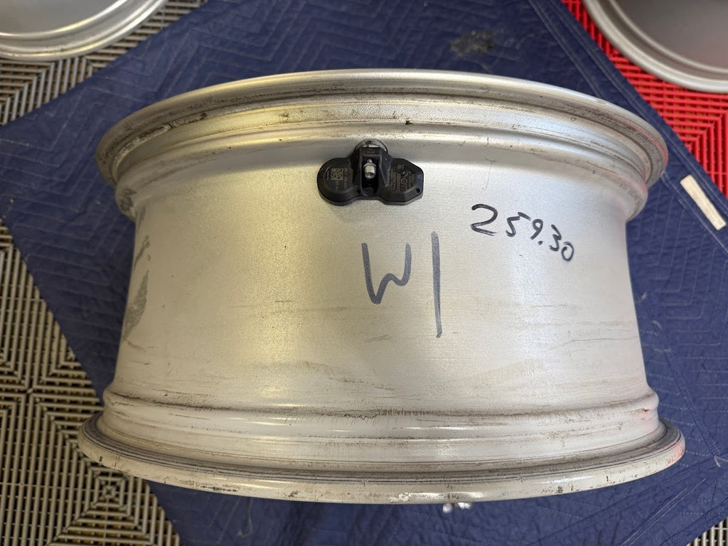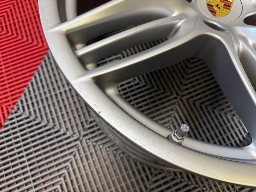 Tire pressure monitoring sensors (TPMS) for a 991.1 and center caps included. Caps are gloss silver and sheen does not match perfectly, but it is difficult to notice unless inspecting closely.
