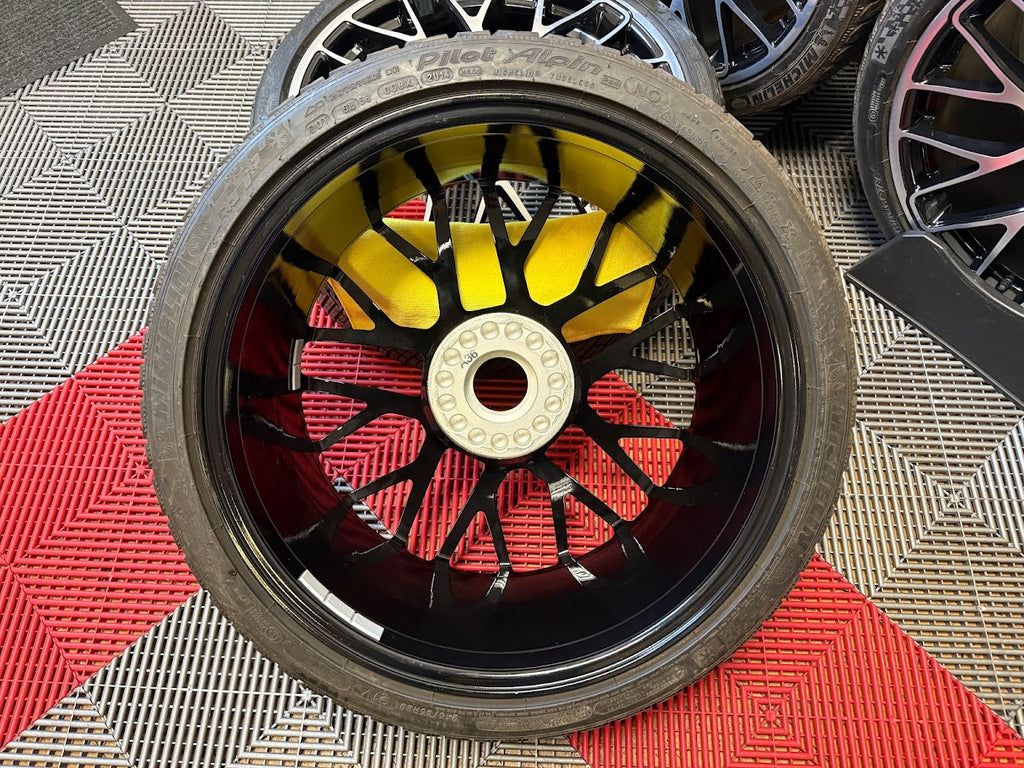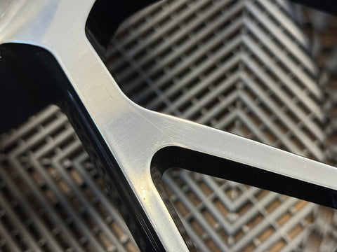 Cosmetically wheels are a 9.5/10. Original Porsche factory finish - wheels have not been refinished. No curb rash. Wheel faces show a few tiny nicks and superficial scratches.