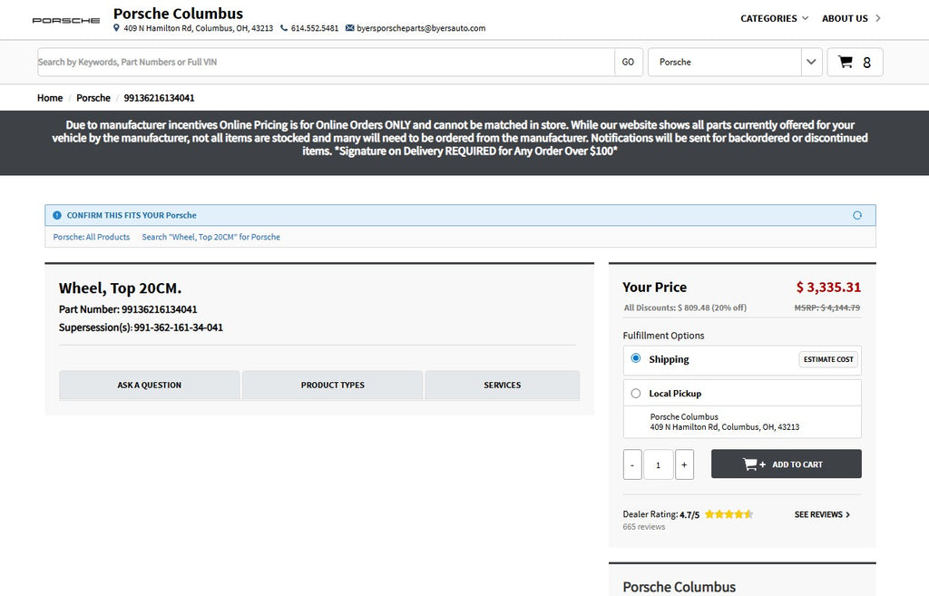 Compare at MSRP new from Porsche of over $3k per wheel.