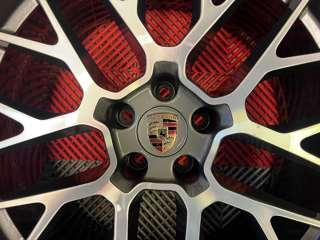 Porsche center caps included. Caps supplied may either have the full color or black and white Porsche crest, dependent on in-hand availability.