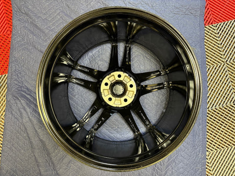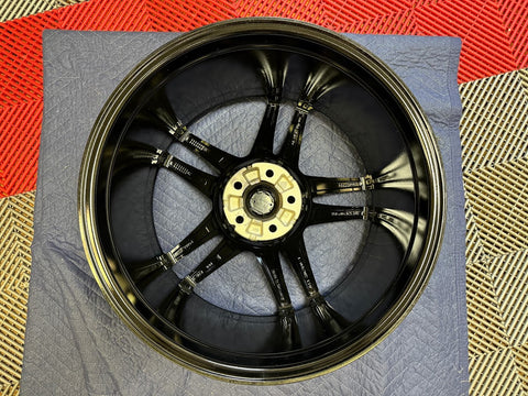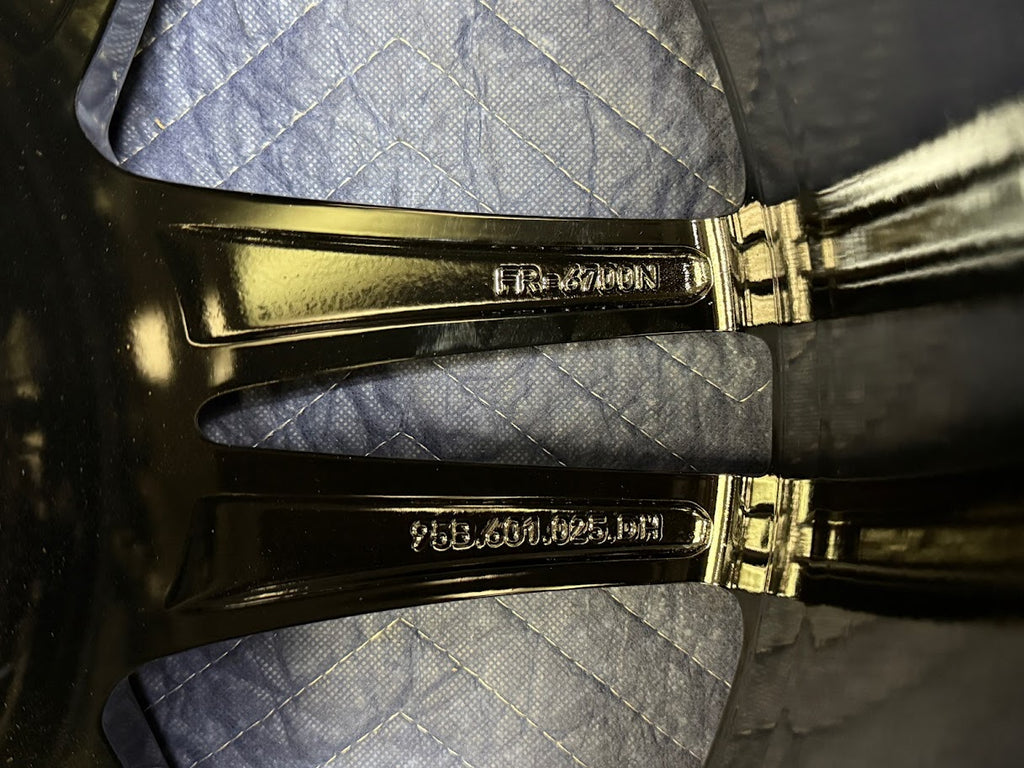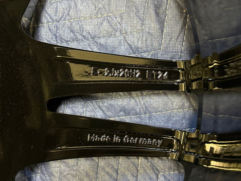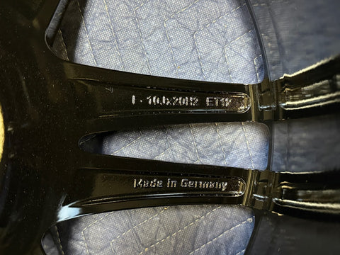 Wheels have been professionally refinished and not mounted since. Gloss black powder coated finish.