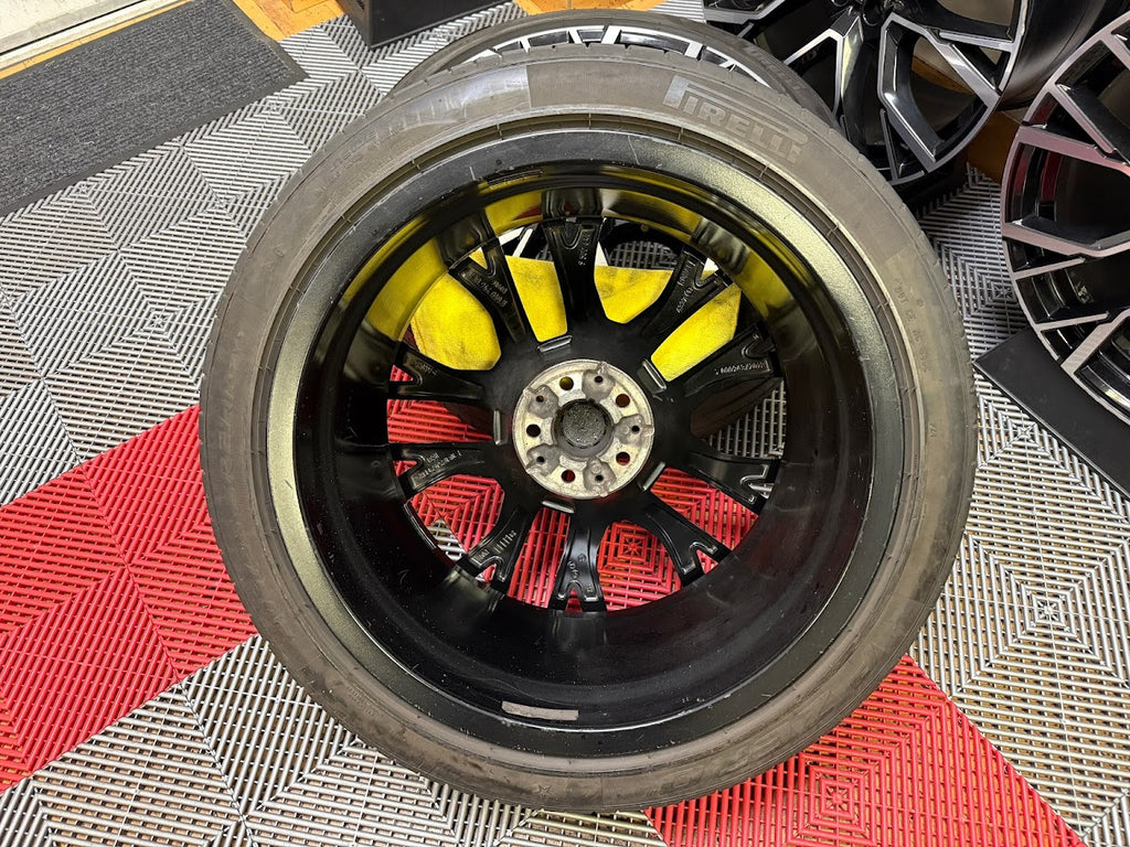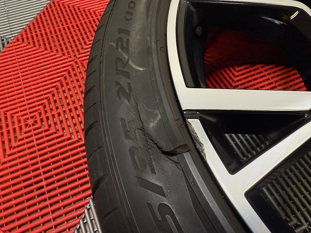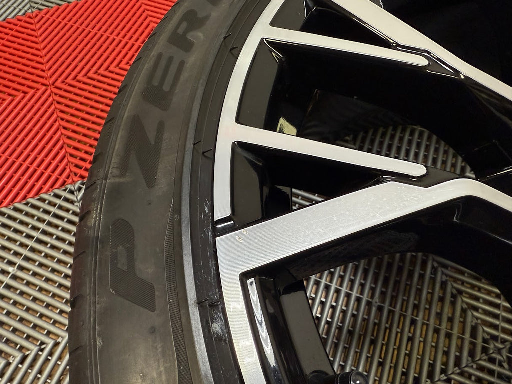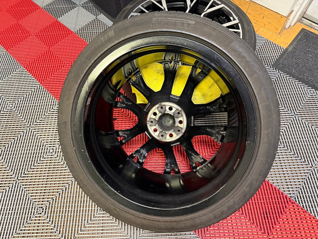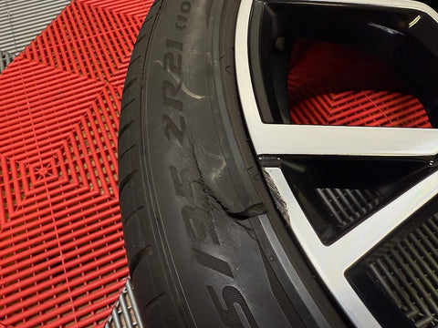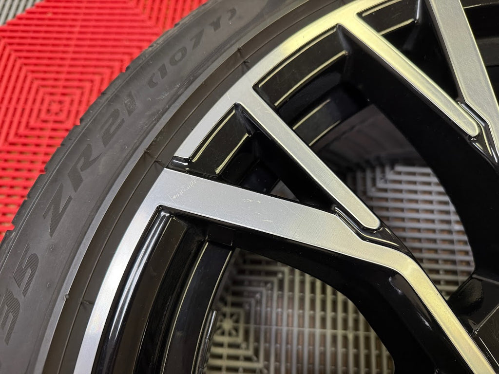 2 Pirelli P-Zero summer tires included on the front wheels. 295/35ZR21 size. Tires show between 5-6/32" of remaining tread and 2020/21 date codes. One tire has a slit on the sidewall, but no threads are visible and the tire still holds air - use is at buyer's own risk and discretion.