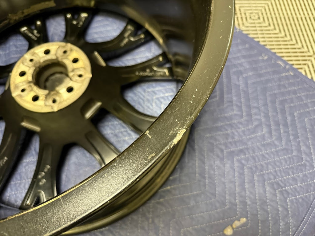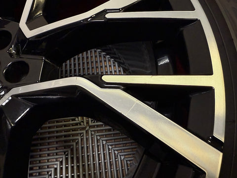 Cosmetically wheels are an 8/10 overall. 3 of the wheels show minor curb rash. One rear wheel has light rash along most of the outer edge. Some small scuffs, nicks and chips from normal use. Minor brake dust and dirt residue on the inner wheel barrels.