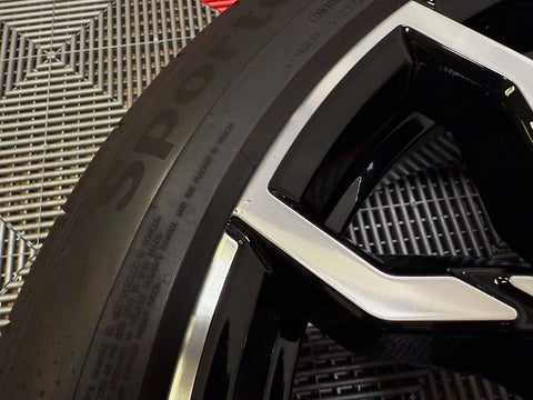 Cosmetically wheels are an 8/10 overall. Each wheel has some small nicks and scratches from normal use. One light section of curb rash on one front wheel. Inner wheel barrels show some light brake dust and dirt residue.