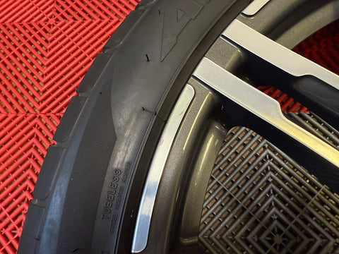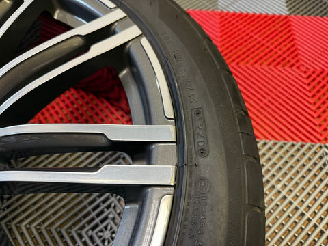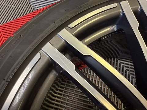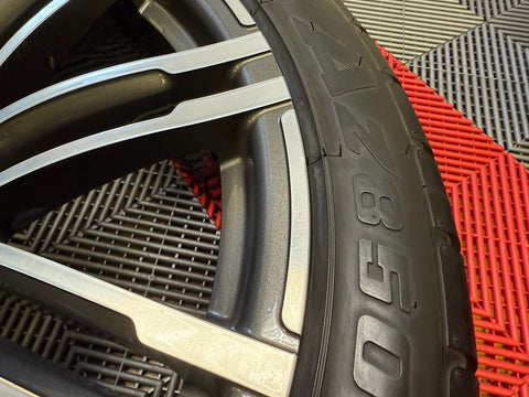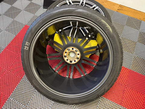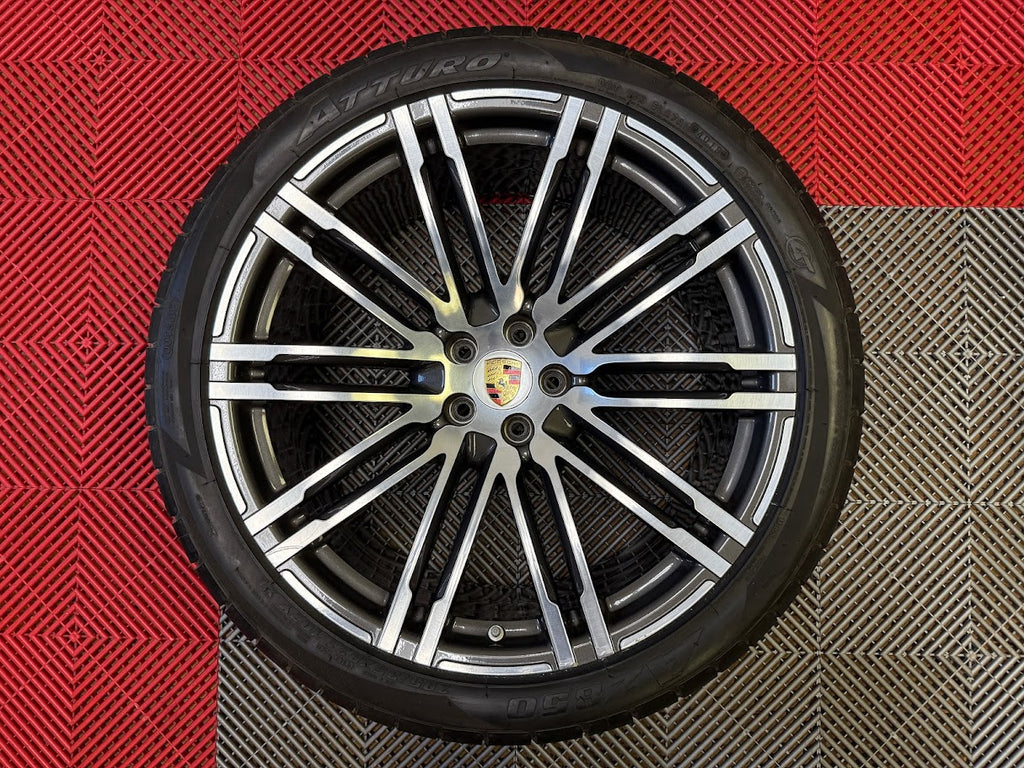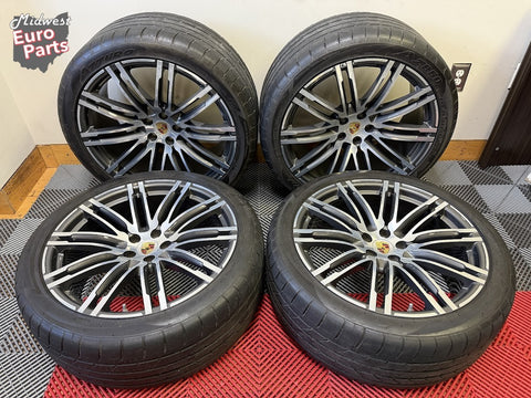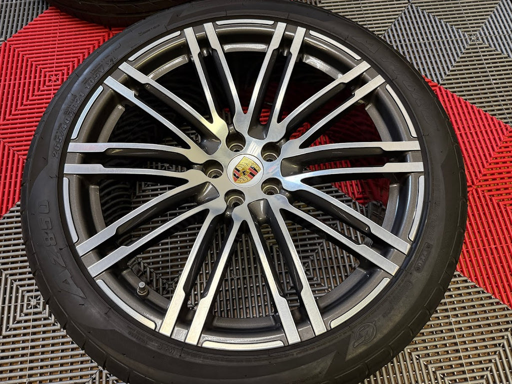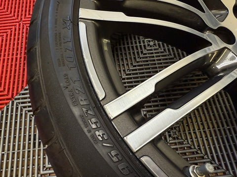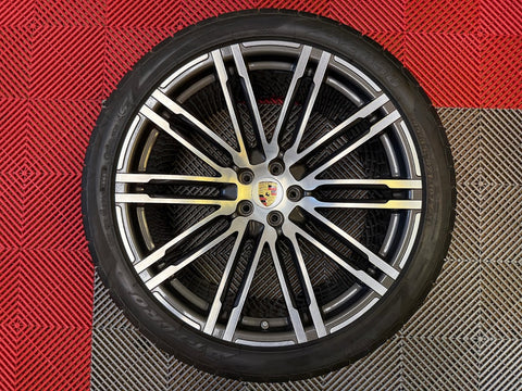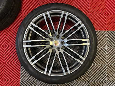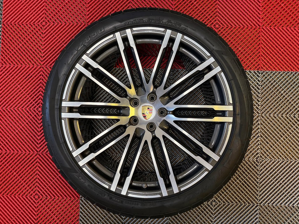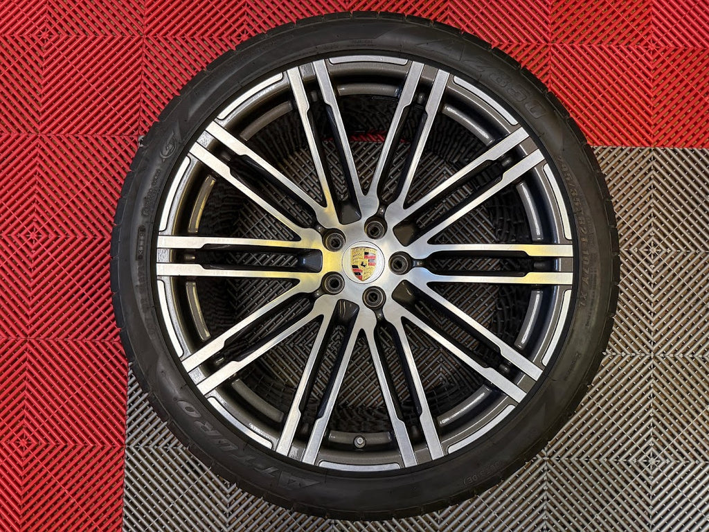 Up for sale is a set of OEM 21" Porsche Turbo III forged wheels with tires. Full set of 4 wheels, tires, TPMS and center caps.