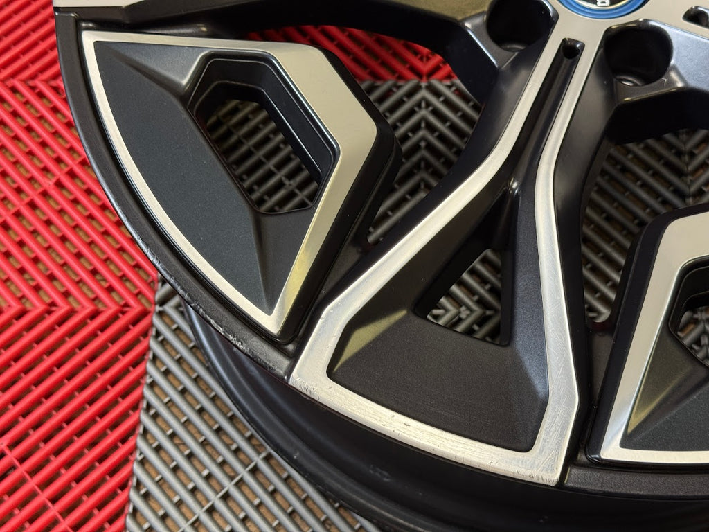 Up for sale is a set of OEM 22" BMW iX wheels. "Frozen Midnight" matte finish.