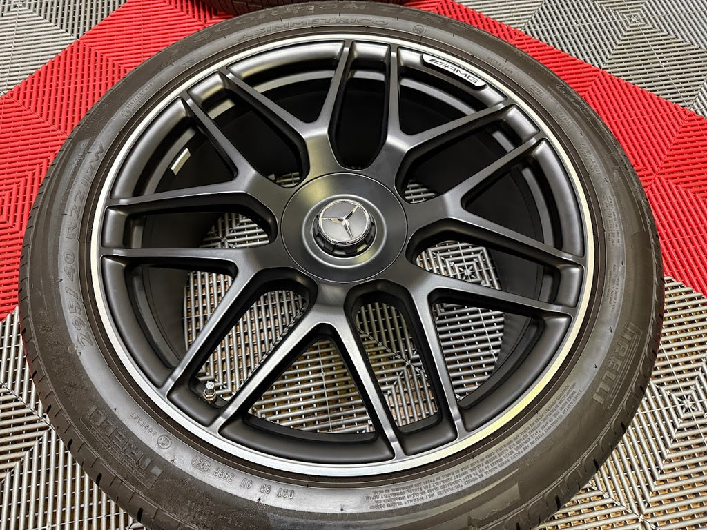 Up for sale is a set of OEM 22" Mercedes G63 AMG wheels and tires. Full set of 4 wheels, tires, TPMS and center caps. Original, Genuine forged Mercedes wheels - Made in Germany. Not aftermarket imitations.