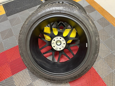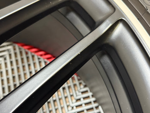 Cosmetically wheels are a 9.5/10. Wheels show a few tiny nicks, small chips and superficial imperfections on the wheel faces from handling. Inner wheel barrels have some minor brake dust/dirt residue.