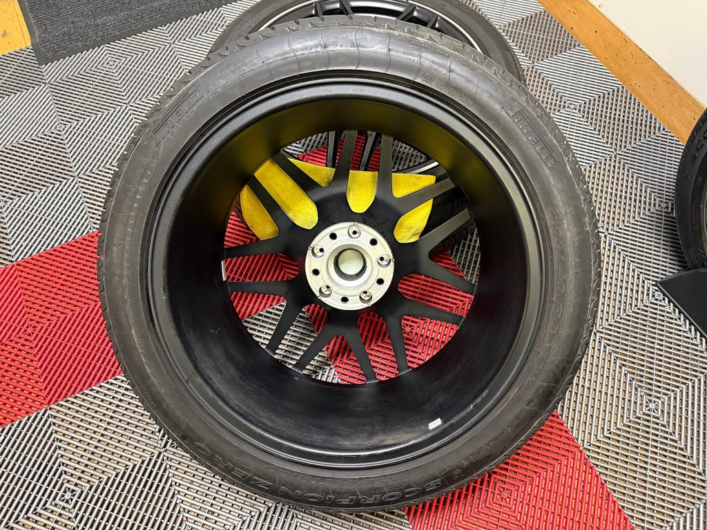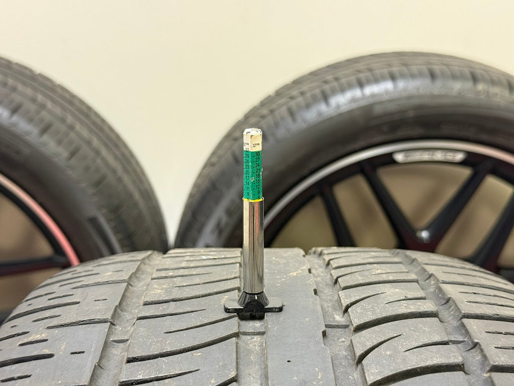 Tires are Pirelli Scorpion Zero Asimmetrico All-Season tires. Two tires show between 5-6/32" of remaining tread. The other two tires show between 6-7/32" of tread remaining. 2021 date codes on the tires.