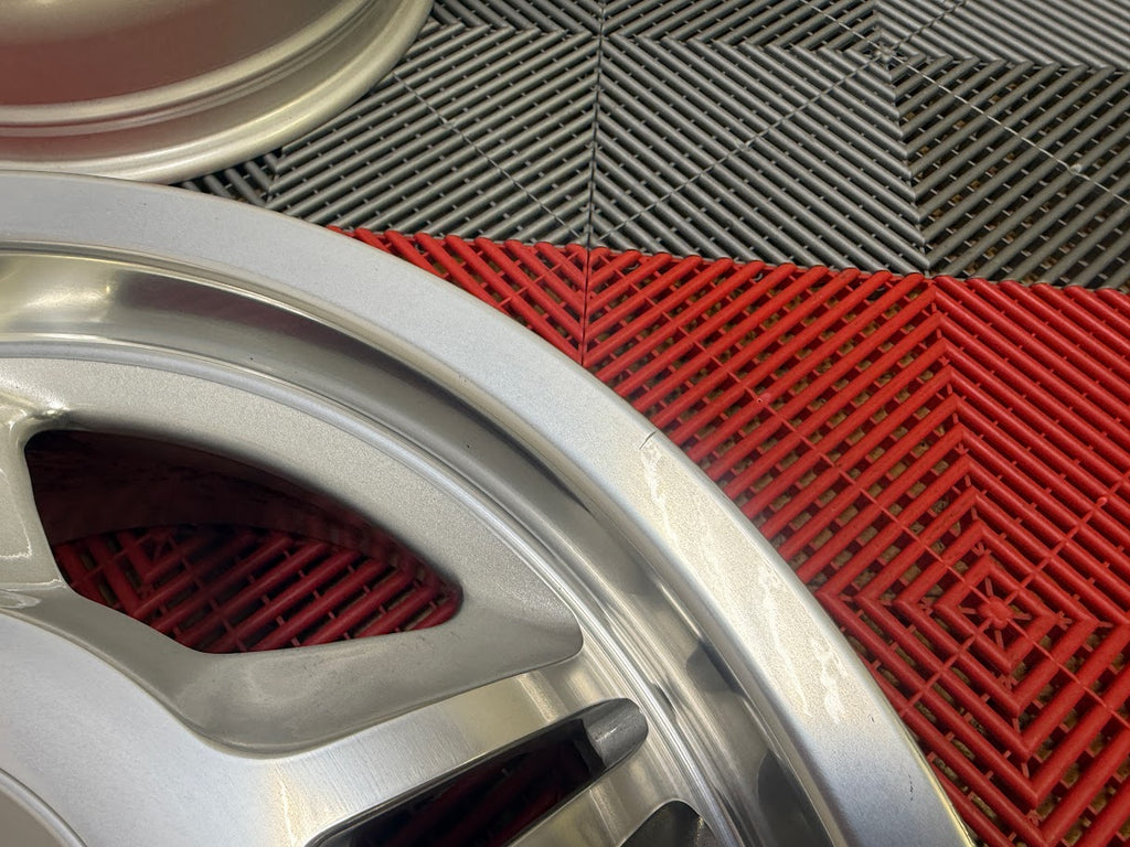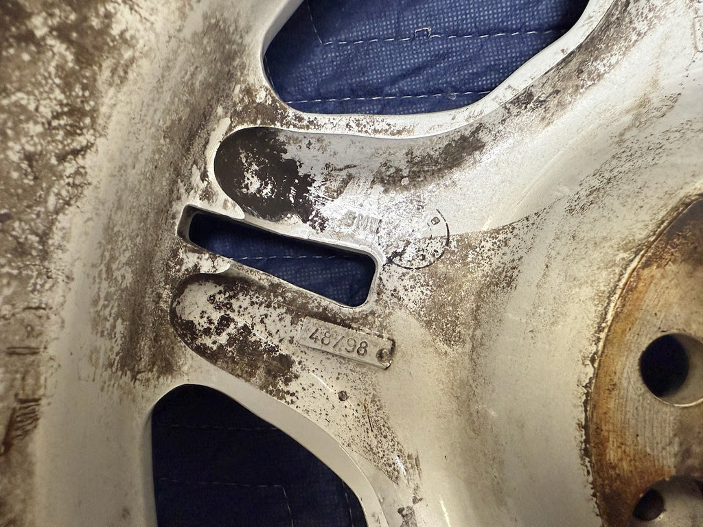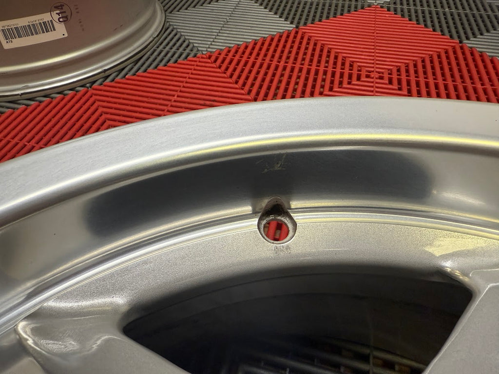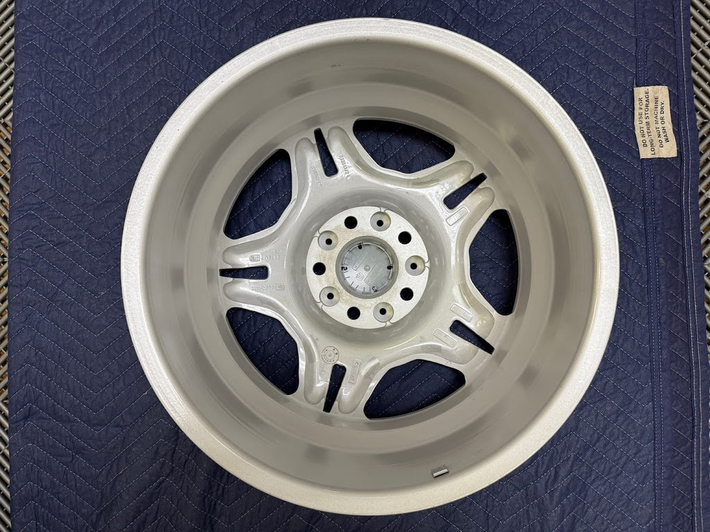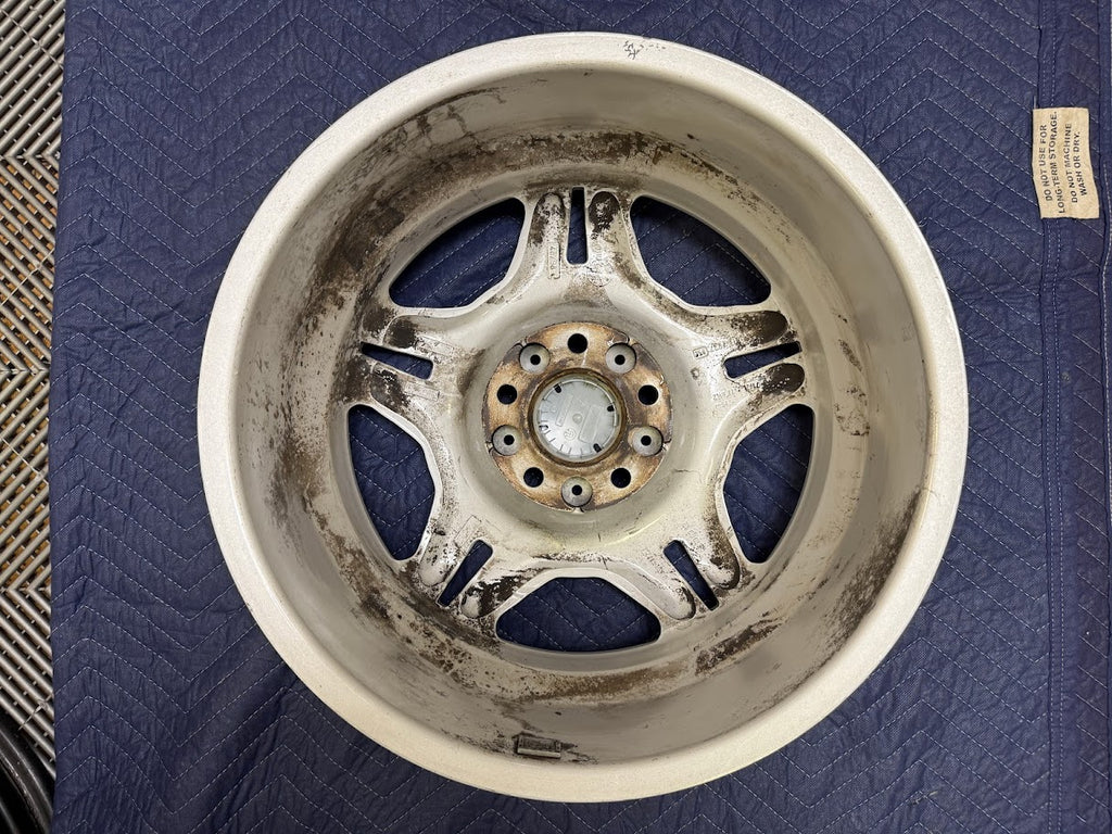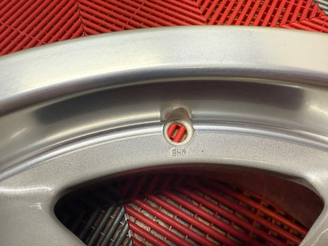 Cosmetically wheels are in 9/10 condition. One rear wheel shows some minor curb rash. A few small nicks and minor scratches throughout from normal use. 3 of the wheels show brake dust and dirt residue on the inner wheel barrels. Finish on the wheels presents very well and is still glossy - not faded from age like many of these wheels.