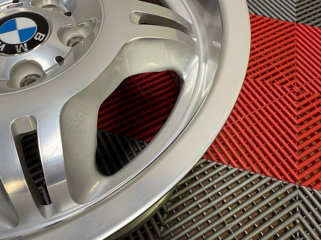 It is incredibly difficult to find a set of these wheels, especially in this condition. They were discontinued by BMW several years ago. This set retains its original factory finish, one that is very difficult to authentically replicate on refinished/remanufactured wheels. Never refinished, repaired or touched up.