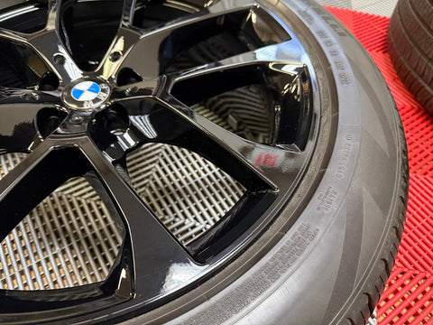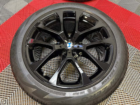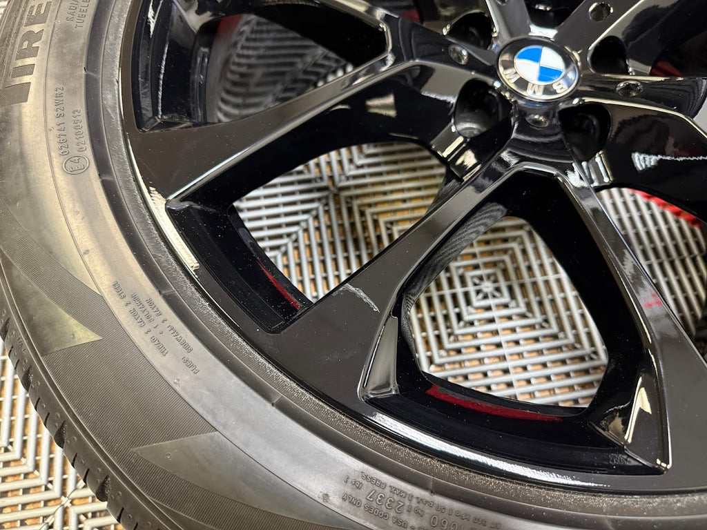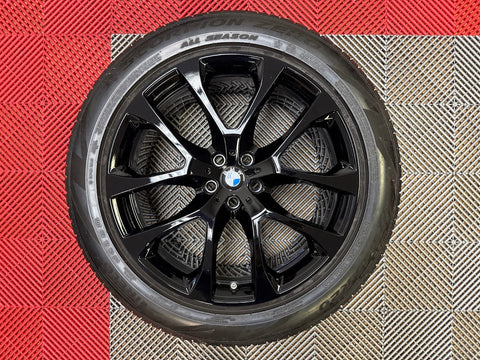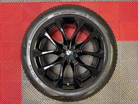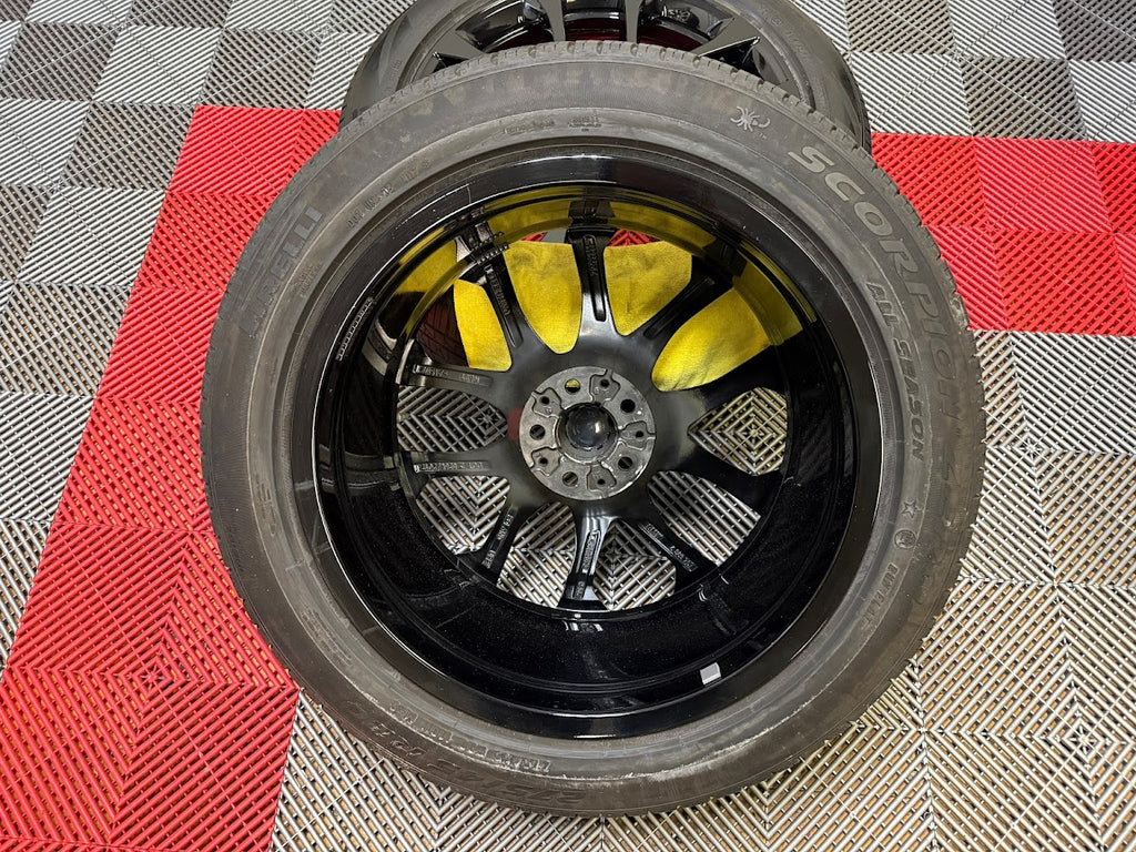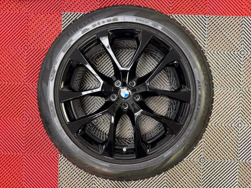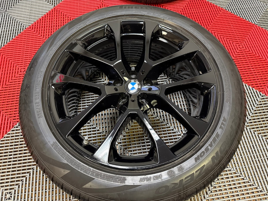 Tires are BMW OEM Star-spec Pirelli Scorpion Zero All-Season tires. Tires have 2022 date codes and show between 6-7/32" of tread remaining all around.