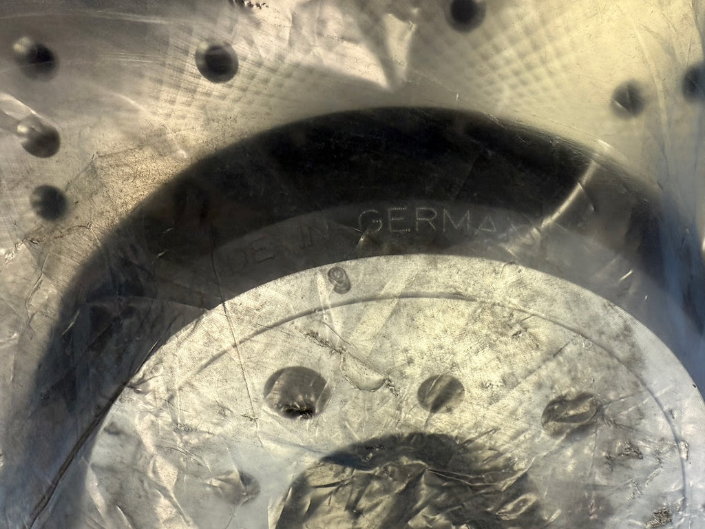 These are OEM (Original Equipment Manufacturer) rotors, made by SHW who is the original supplier to BMW. Made in Germany. They do not have the BMW branding on them, but are equivalent in functionality and appearance.