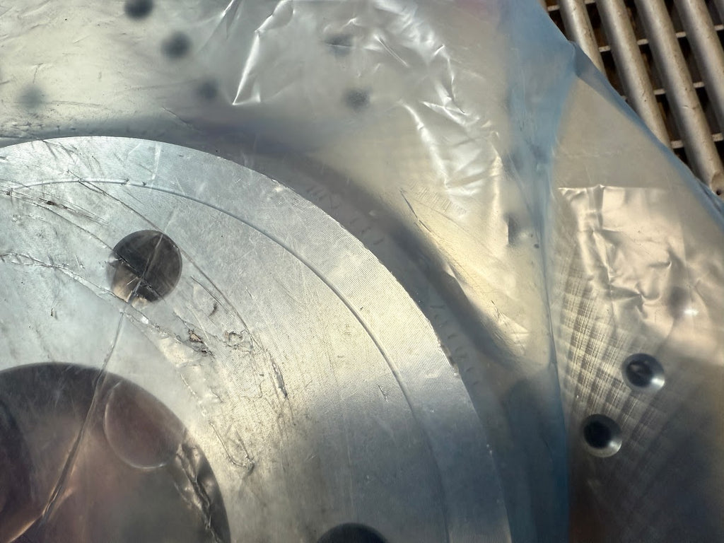 Rotors are in unused condition, still in original plastic. Rotor hats show a few small nicks and marks from shipping and handling. These imperfections do not affect functionality and cannot be seen once installed. Listed as "used" due to these imperfections but once again these have never been installed or removed from the packaging.